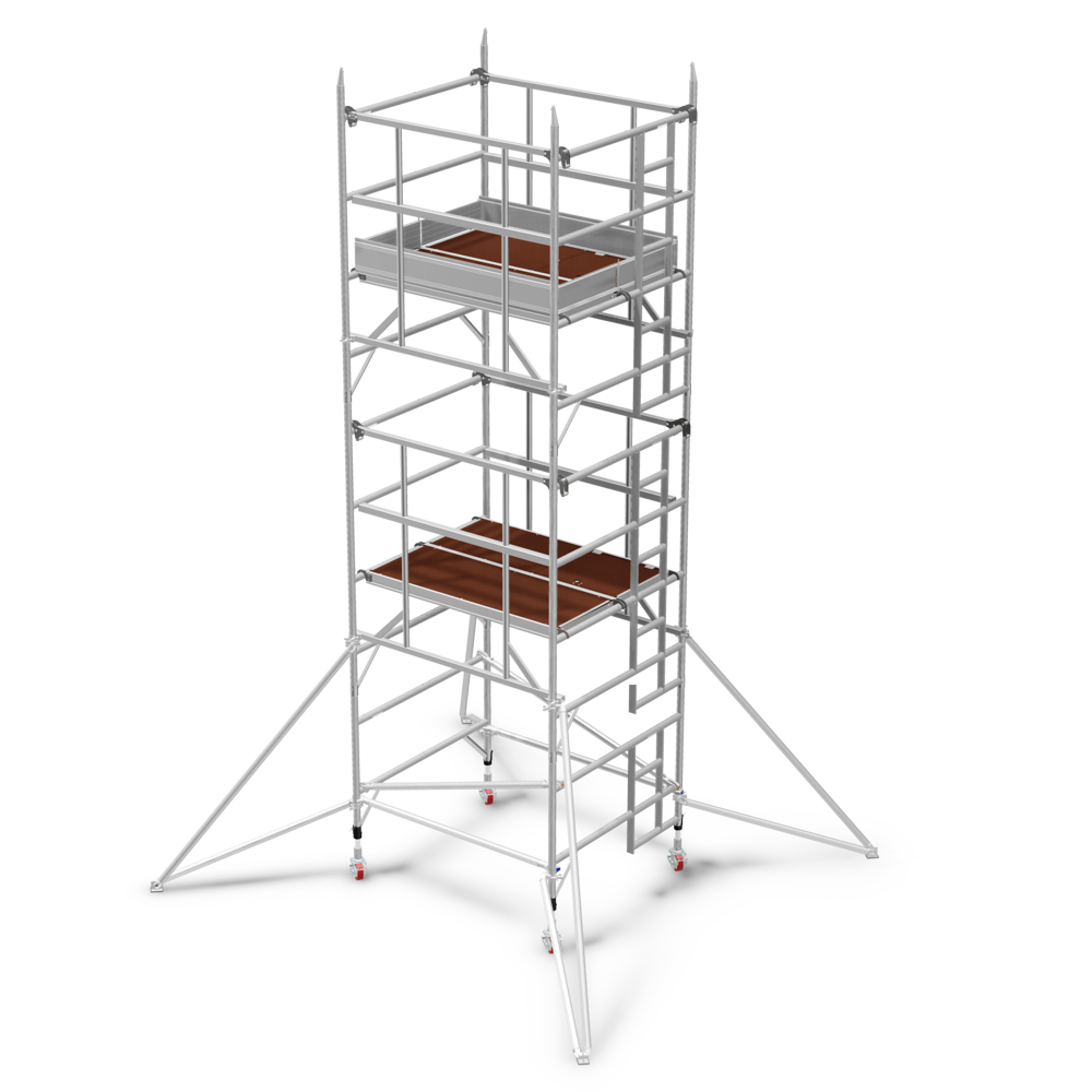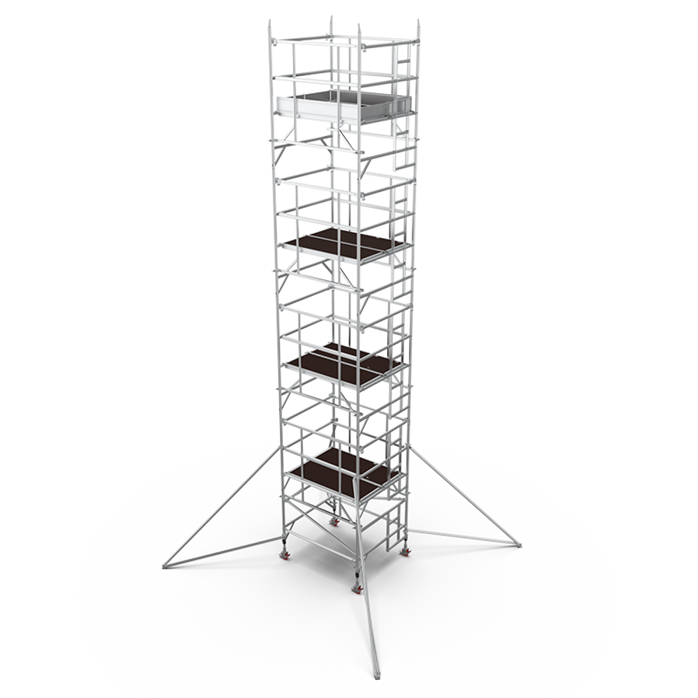Adjustable, lockable castors allow the tower to be moved around site and erected on slightly uneven ground. Platforms are manufactured from a non slip ply for safety, and 1.1m guardrails minimise the risk of falling from the platform. In addition, each access tower is provided with a toeboard set that prevent items falling off the side of the tower.