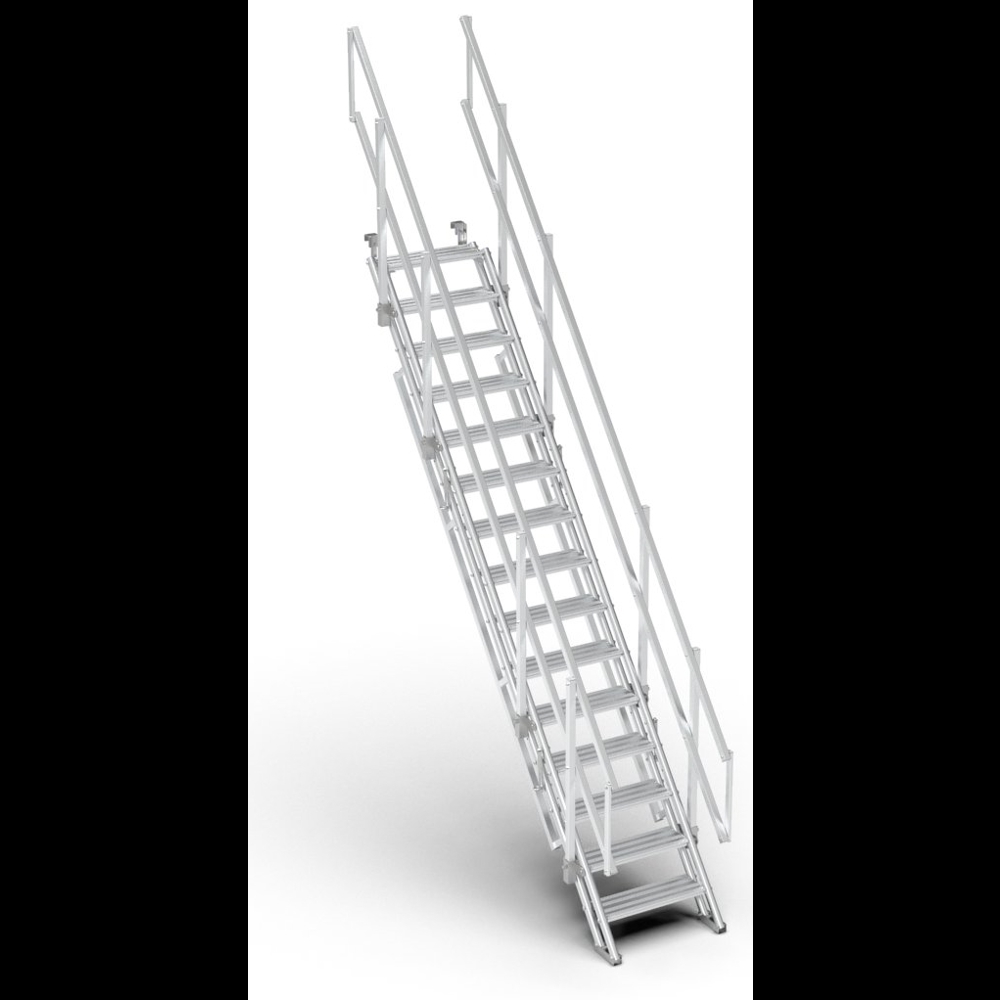 The Alto Universal Stair is a versatile all-aluminium access solution for the tube and fitting scaffolder, allowing a totally compliant staircase to be installed across a range of lift heights to suit any situation. Supplied pre-assembled, the Alto Universal Stair requires only to be unfolded, attached to the desired scaffold tube and locked with a scaffolders spanner.