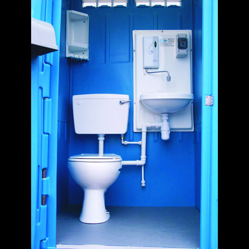 Single Mains Toilet units are compact plumb-in units typically installed on longer term projects. They are fitted with boilers for hot water and soap dispensers.