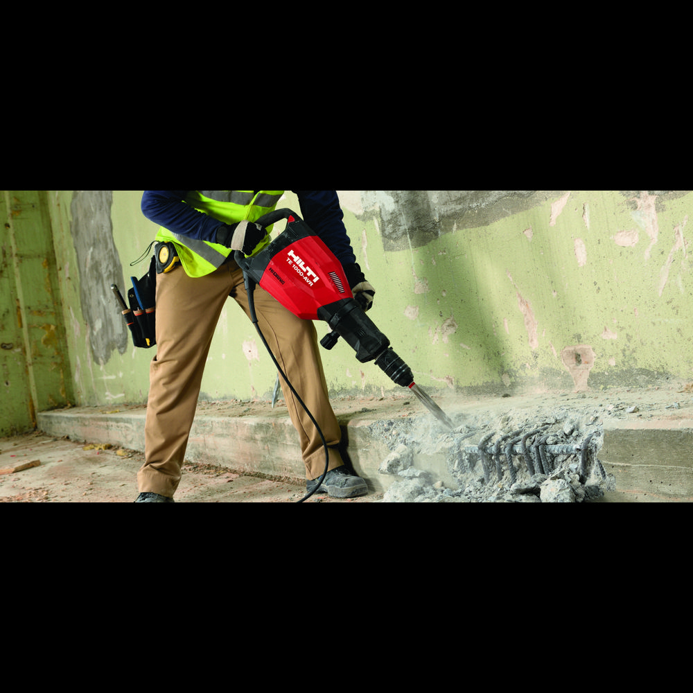 A powerful demolition breaker, the TE-1000 AVR electric breaker has one of the lowest vibration levels in its class. Its 1,600 watt motor enables easy demolition of concrete slabs up to 150mm depth, digging clay and removing floor tiles.