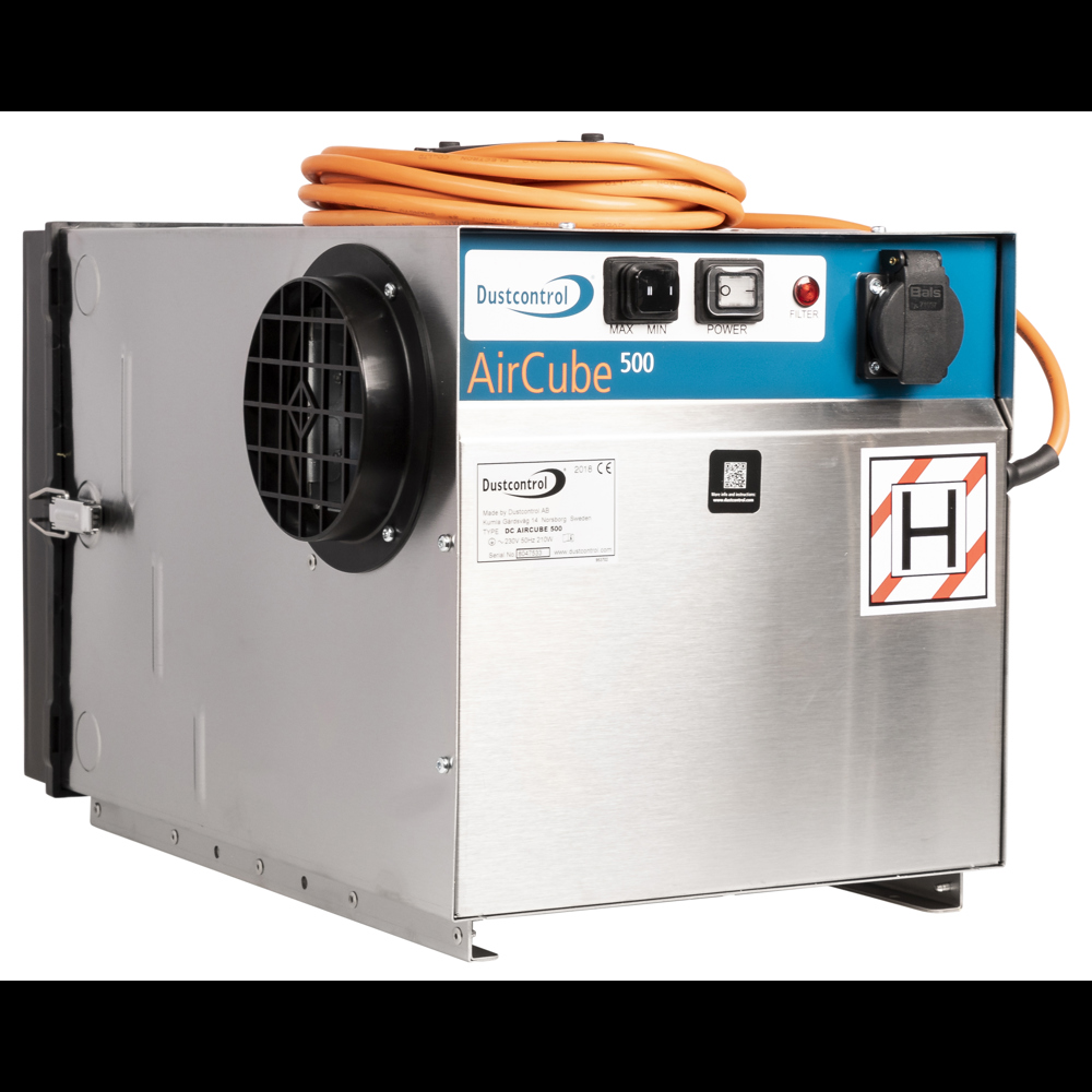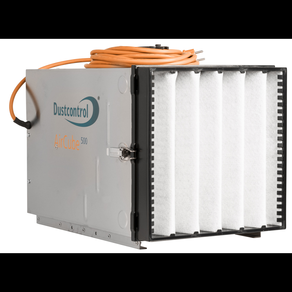 The Air Cube 500 is a compact air cleaner/scrubber that is effective at removing harmful airborne particulates from site such as wood dust or silica dust. They are built from sheet stainless steel and generate large amounts of airflow through the HEPA 13 Filter that removes 99.95% of particulates 0.5 microns and larger.