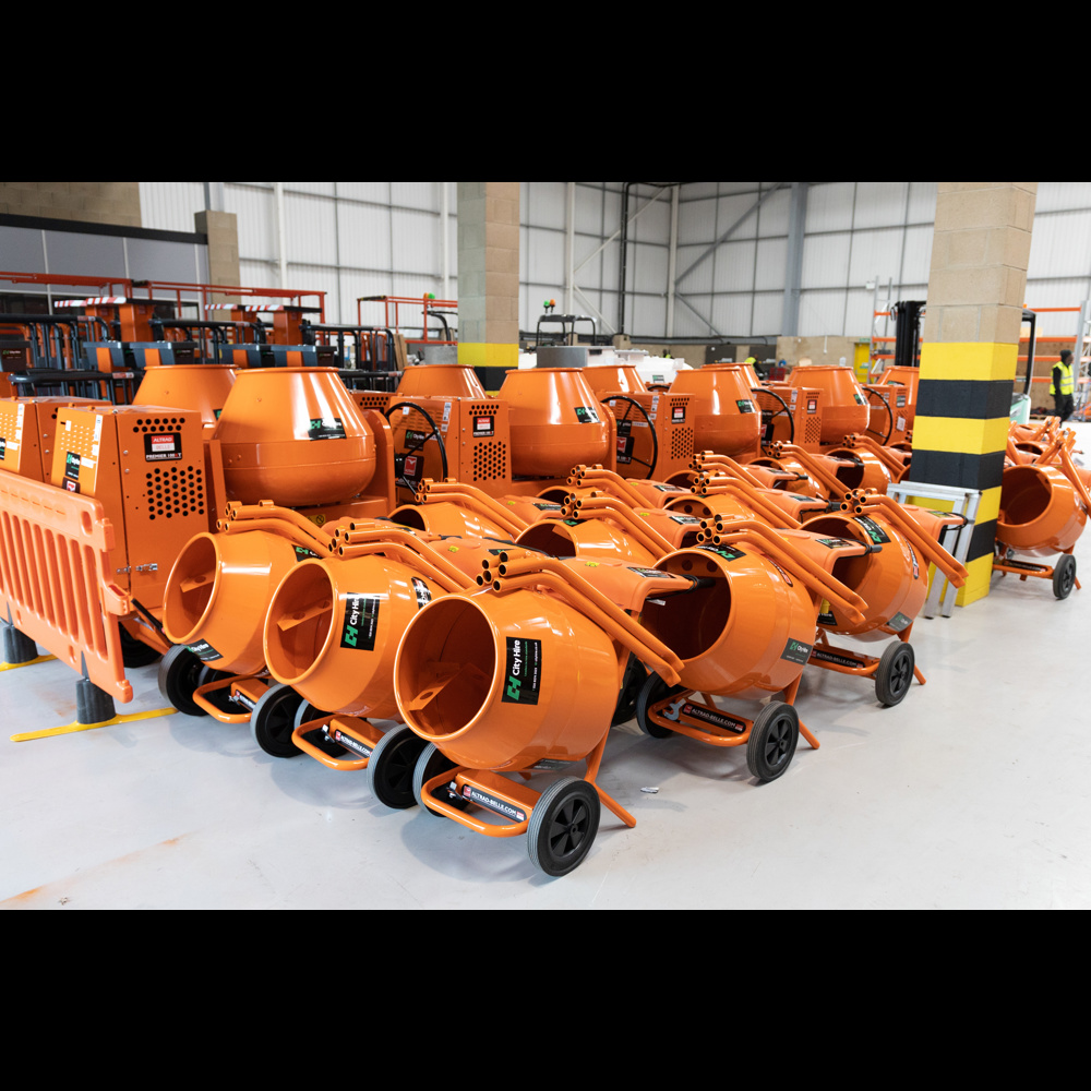 Cement / Concrete Mixers are compact, robust and the most portable and effective means of mixing batches of concrete and mortar on a construction site. They are available in both petrol and electric powered versions and features a rotating / swivel stand to tip concrete or mortar into barrows with ease.