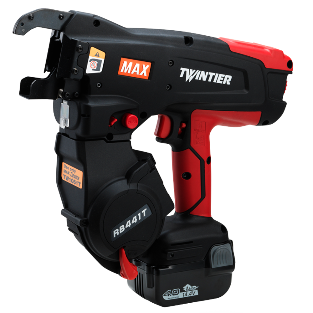The Max Twintier RB441T is a professional rebar tying machine capable of tying speeds of less than 0.7 seconds and up to 4,000 ties per charge. Ideal for use in precast concrete construction, domestic & commercial building foundations, under floor water pipe work, and fastening Razor wire on Security fences.
