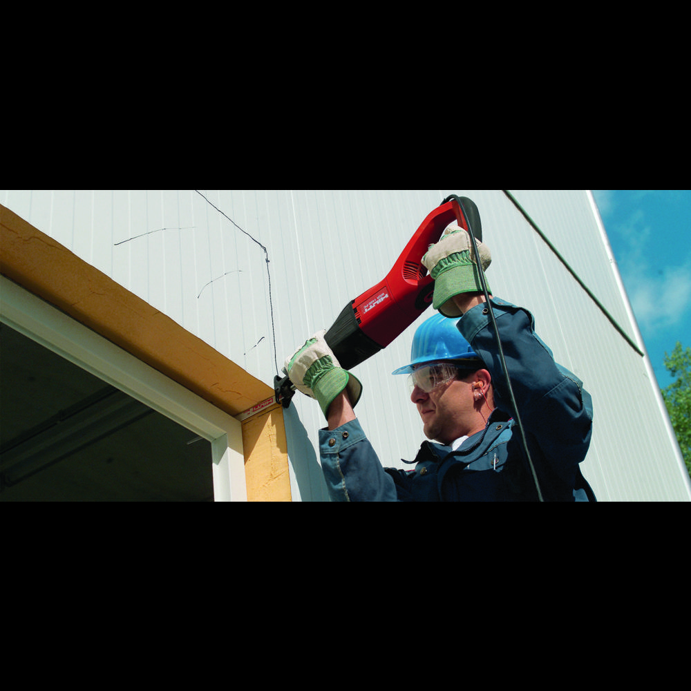 The Hilti WSR 1400-PE is a powerful heavy duty reciprocating saw suitable for demanding demolition work, wood cutting, and masonry. The integrated Smart Power sensors adjust motor settings to suit the material and pressure applied.