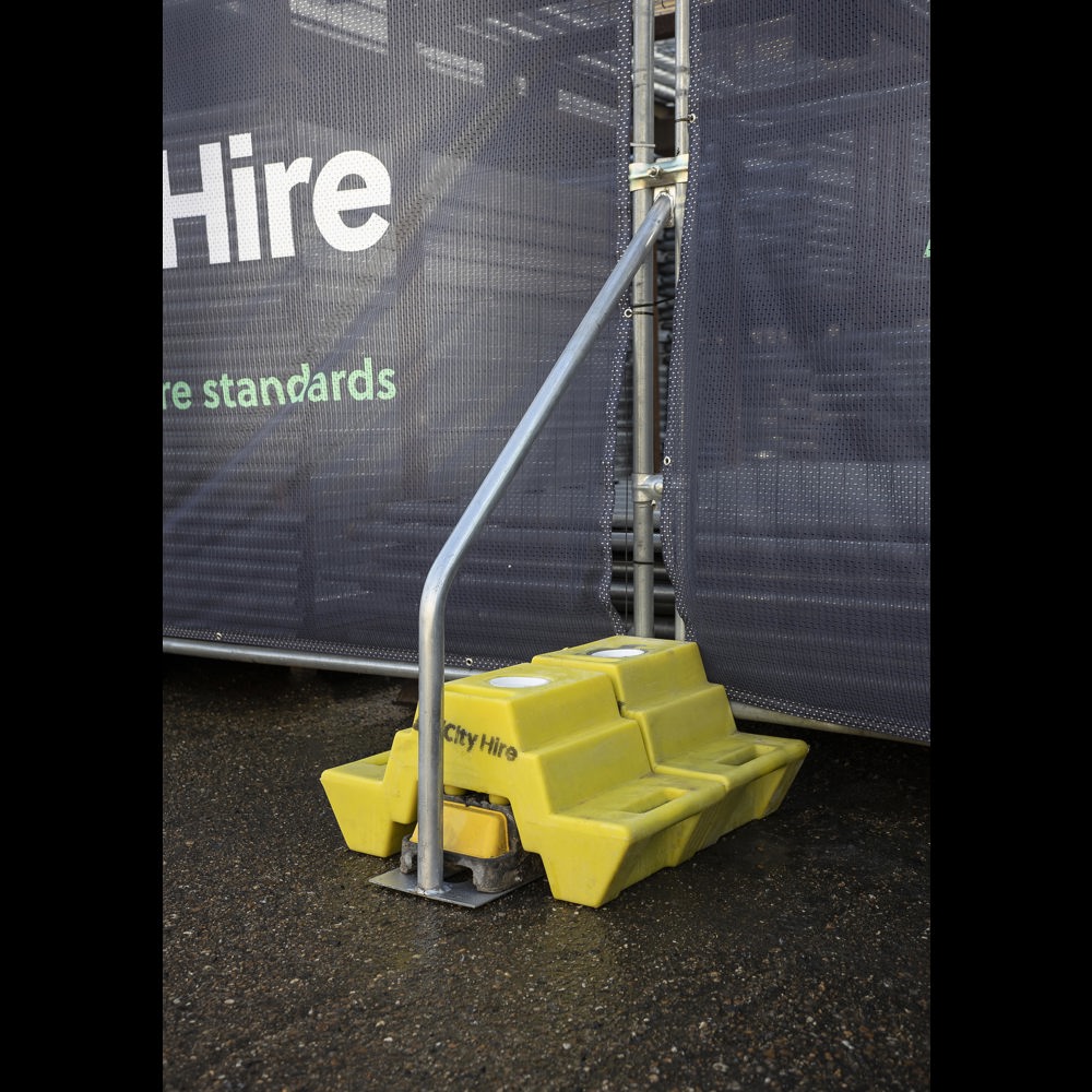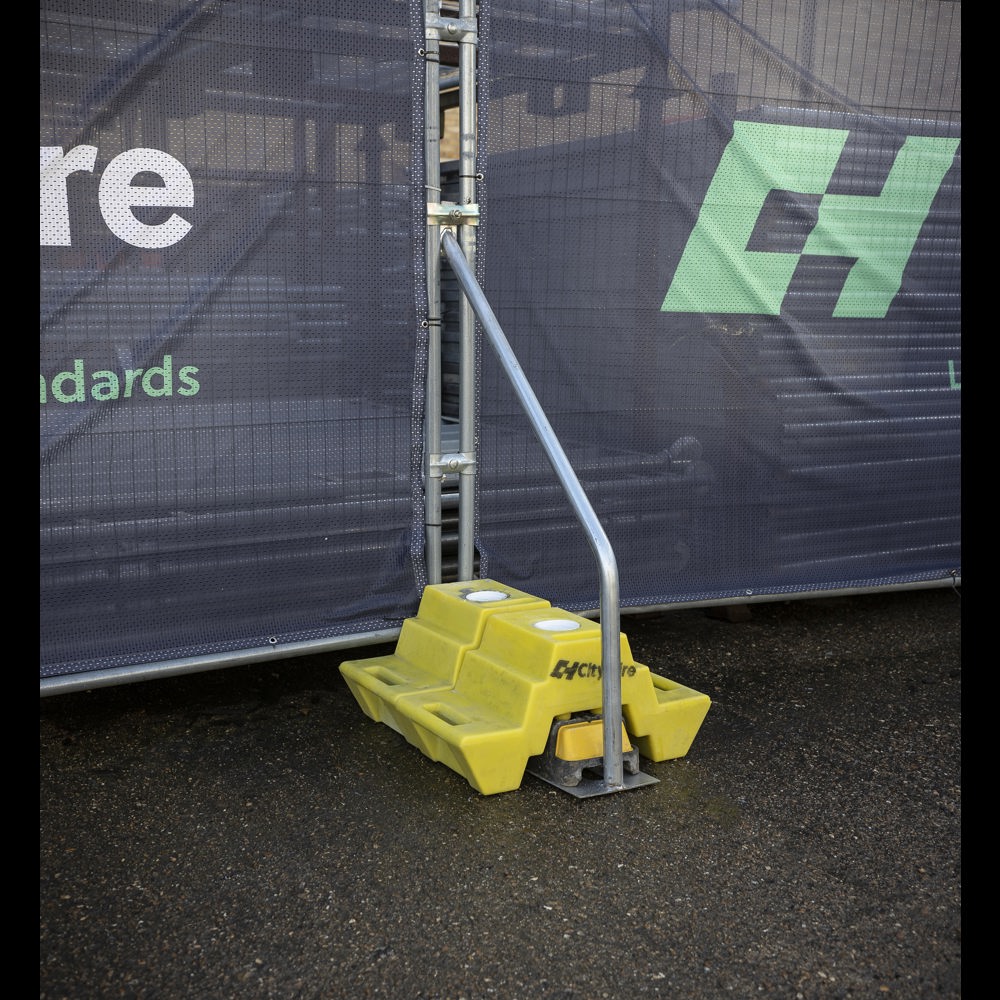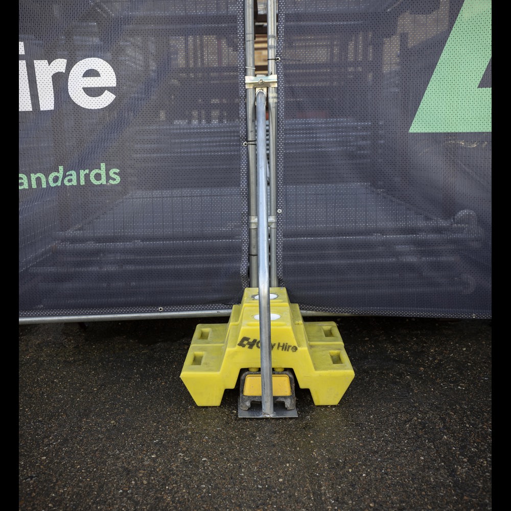 Brace Blocks are concrete ballast blocks designed to stack on top of temporary fencing and hoarding blocks in order to increase fence stability and wind loading. The 44kg blocks are filled with concrete inside a plastic shell for durability. Brace Blocks are also stackable, so multiple blocks can be placed together to increase wind loading on exposed sites. The blocks can be used with either the angled support brace or short brace and are easy to relocate with 2 people.