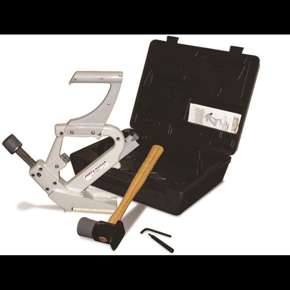 A portanailer is used to secure flooring. A portanailer is also known as a manual floor nailer or nail gun.