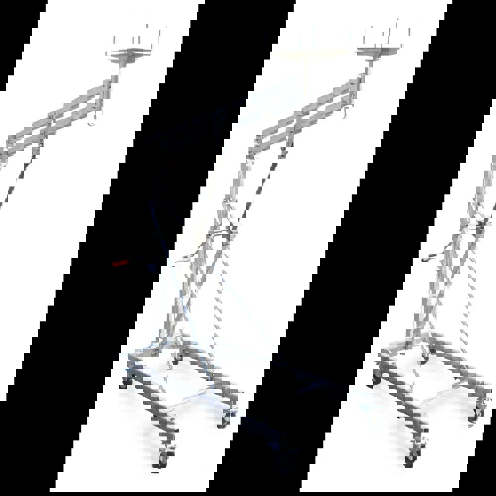 Uses a screw mechanism and winding handle to lift heavy loads 3m high, which is often enough to install beams in residential properties where there is a ceiling height of 2.4m