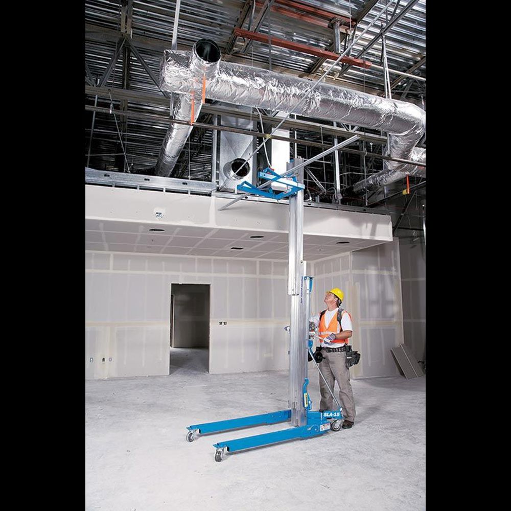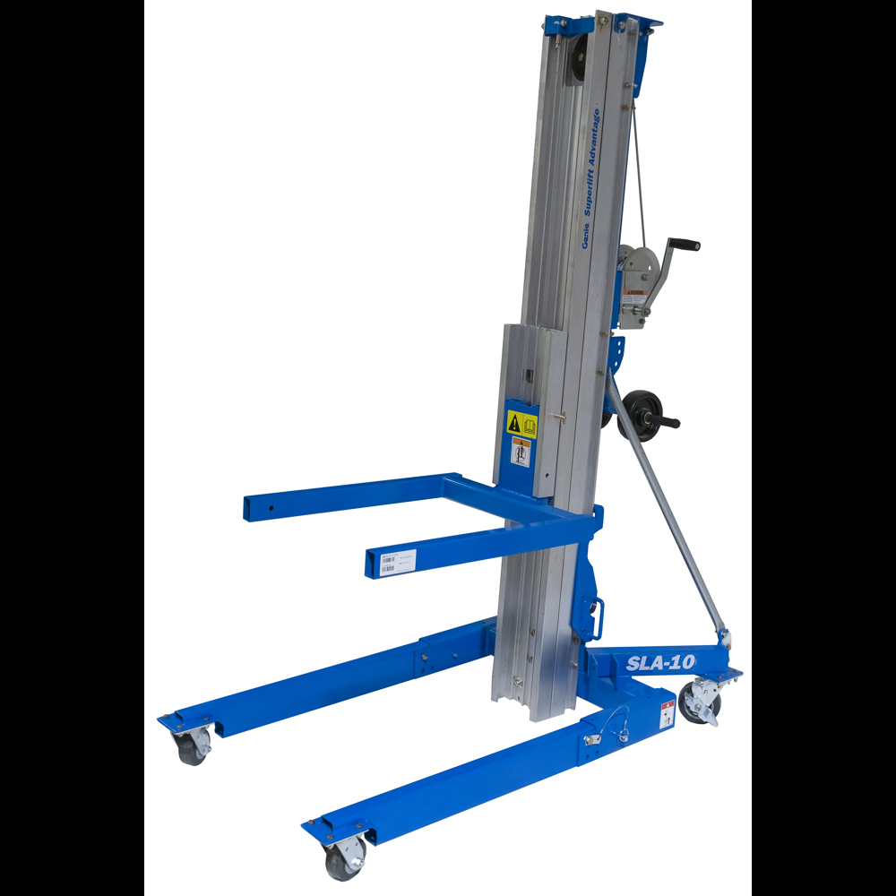 The Genie SLA Materials Lift is a portable solution for a wide range of lifting applications, both indoors and outdoors.