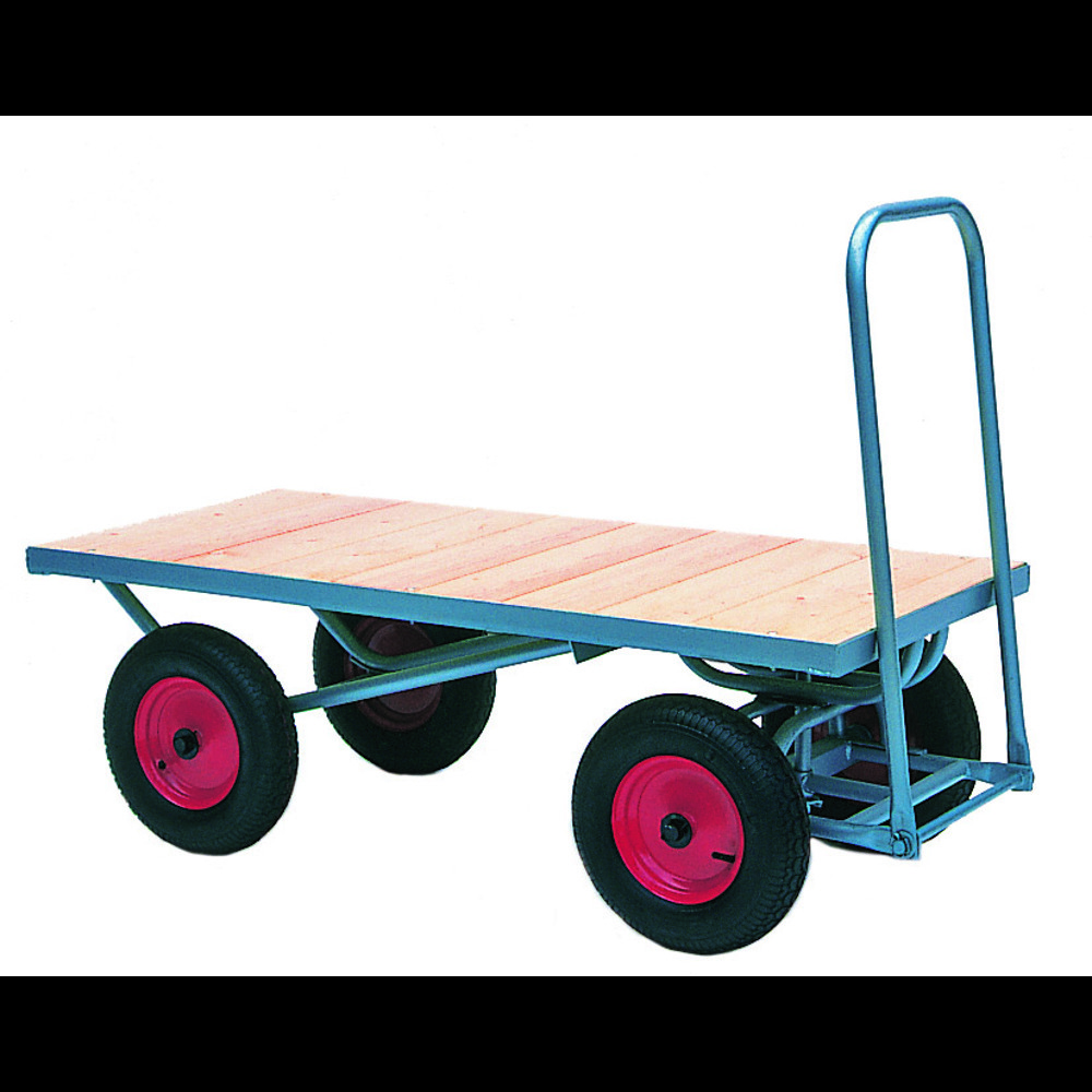 These 4-wheel turntable trolleys allow for transportation of anything up to 1 ton. A flatbed turntable truck has a wide range of different features and applications, which makes them a fantastic choice for demanding tasks on site.