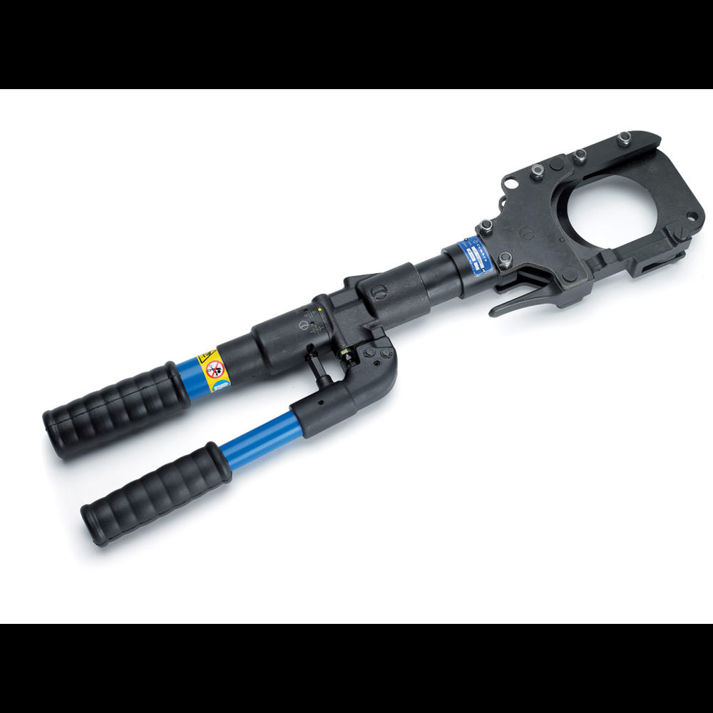 Hand operated hydraulic tool specifically designed tocut copper, aluminum and telecommunications cables having a max overall diameter up to 3-3/8 in. This model is self contained, robust and sturdy. The tool features a double speed action: a fast advancing speed for rapid approach of the blades to the cable and a slower more powerful speed for cutting. The blades are manufactured from high strength special steel, heat treated to ensure a long service life. The head can easily be opened to allow the cutting of running cables, and can rotate by 180 degrees, to enable the operator to work in the most comfortable position. HT-TC0851 features an automatic safety valve to bypass oil when reaching maximum pressure; a pressure release device can also be operated at any stage of operation.