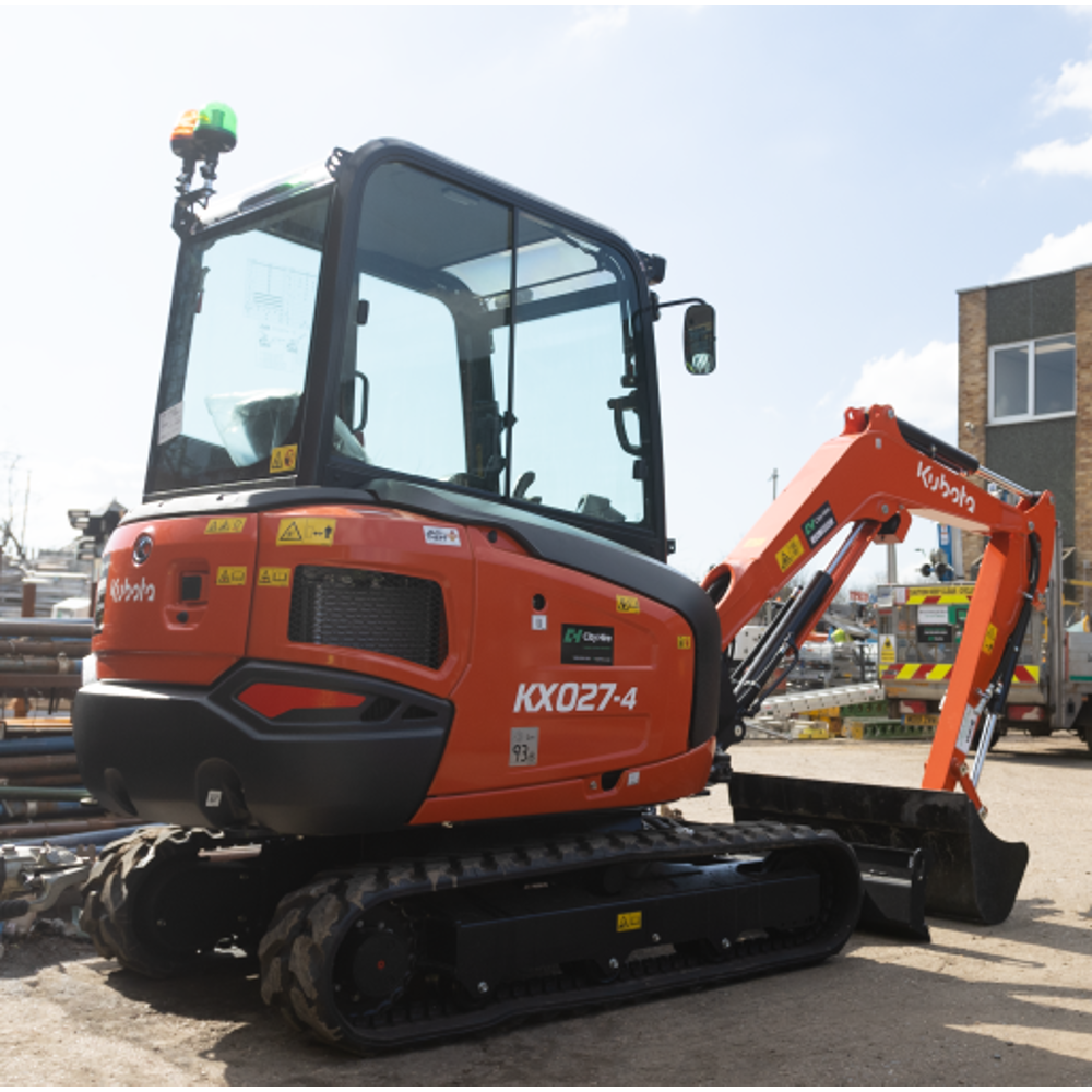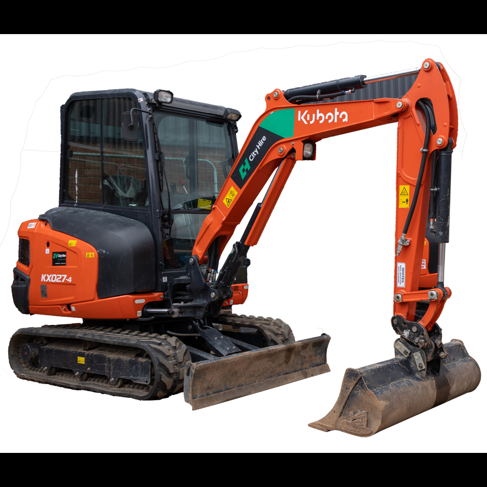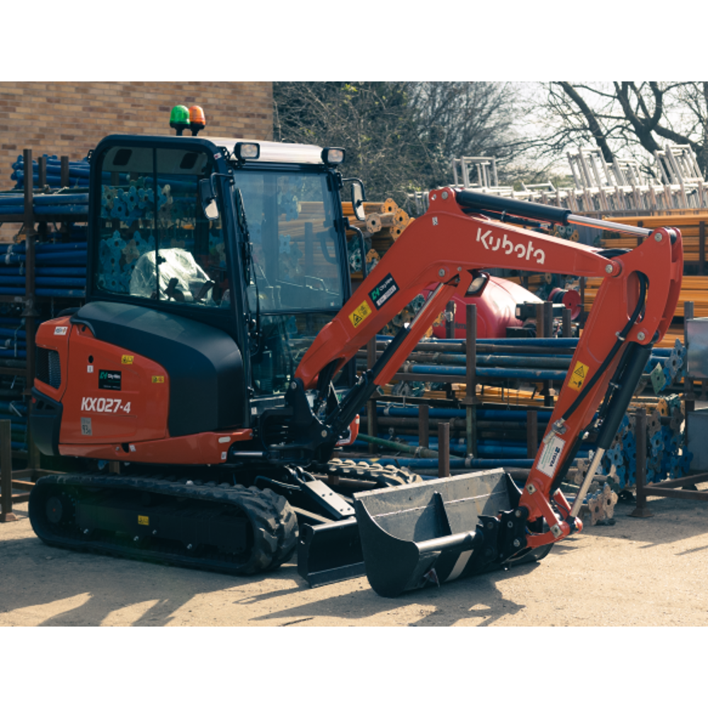 This Kubota KX027 3t digger can lift approximately 1.4t in its optimum boom position.