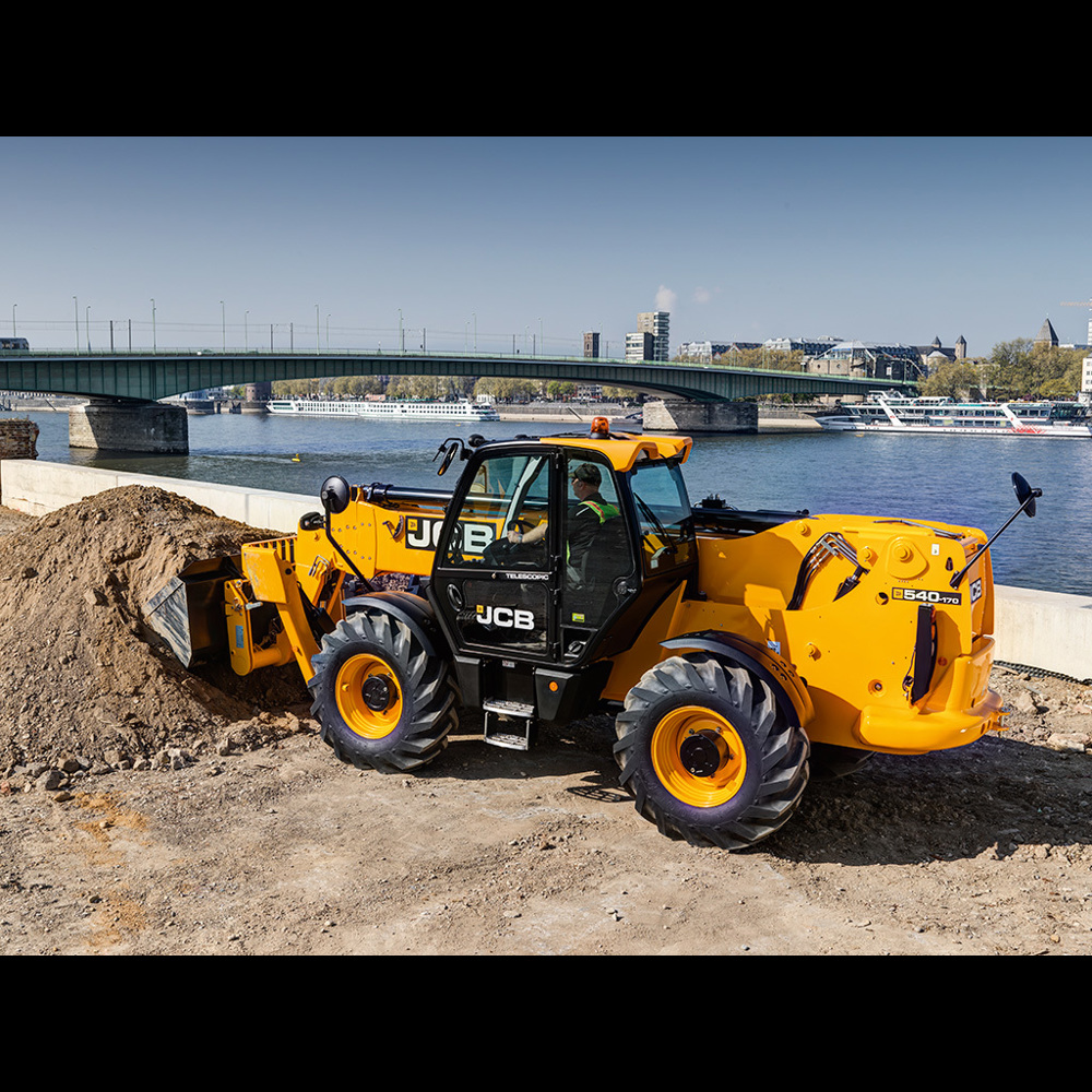 The JCB 540-170 Loadall telehandler is a large machine with impressive capacity. Commonly used for lifting pallets of material such as bricks onto multi-storey buildings. Also used in construction logistics to move material around site.