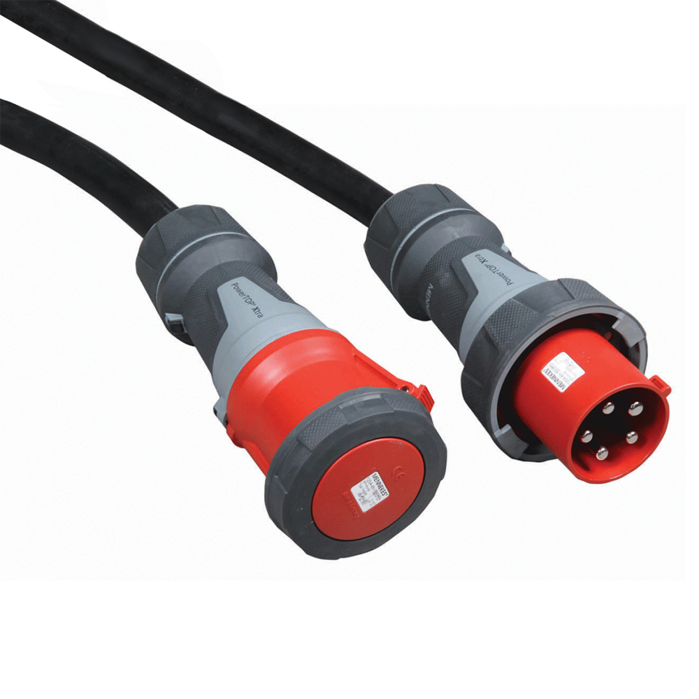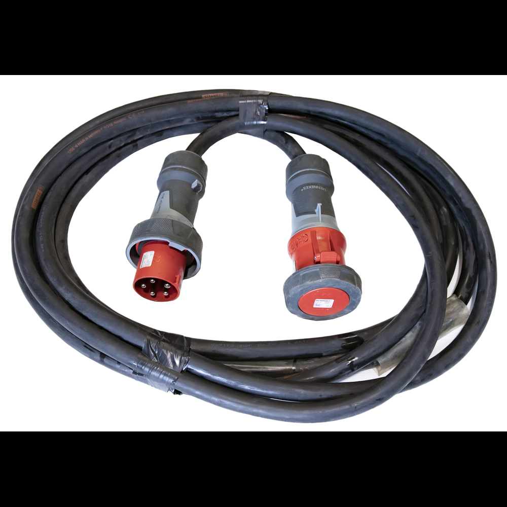 3 Phase extension cables are high-capacity cables used with a large generator. 32 amp and 63 amp sizes are available in 5m and 10m lengths.