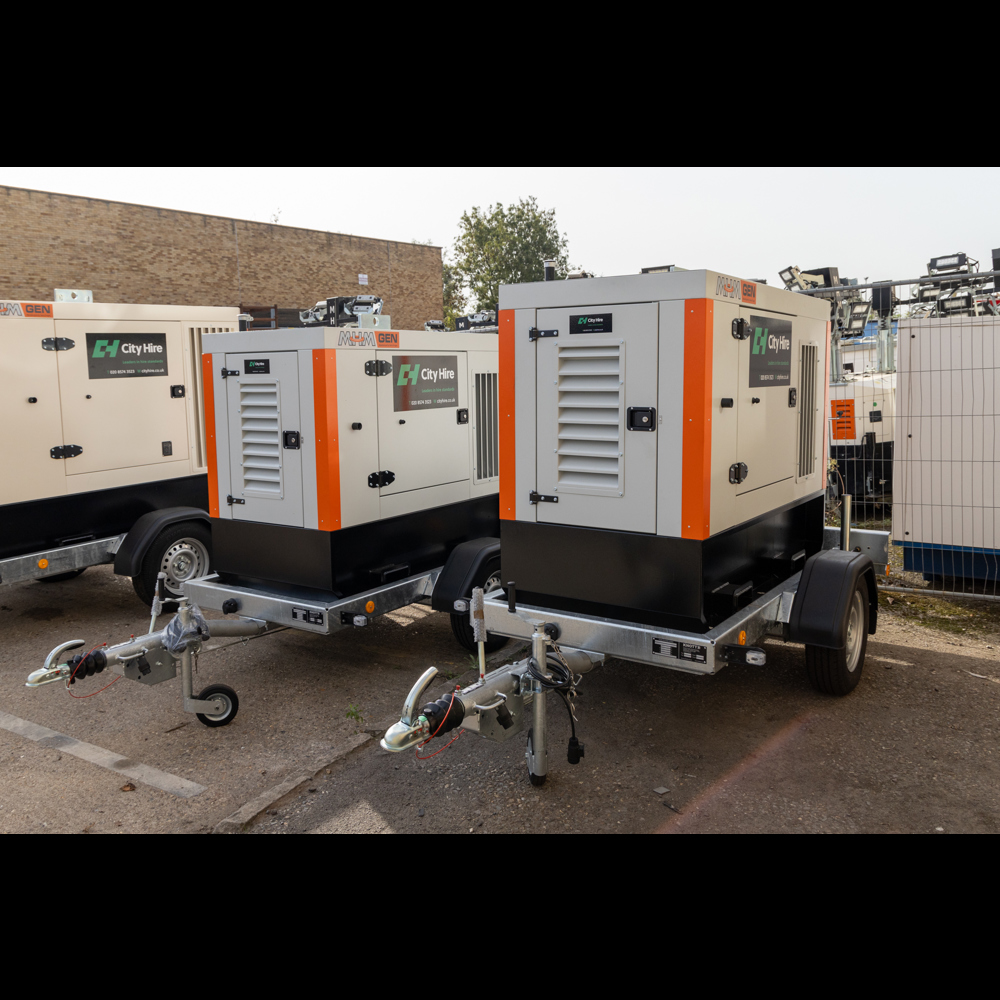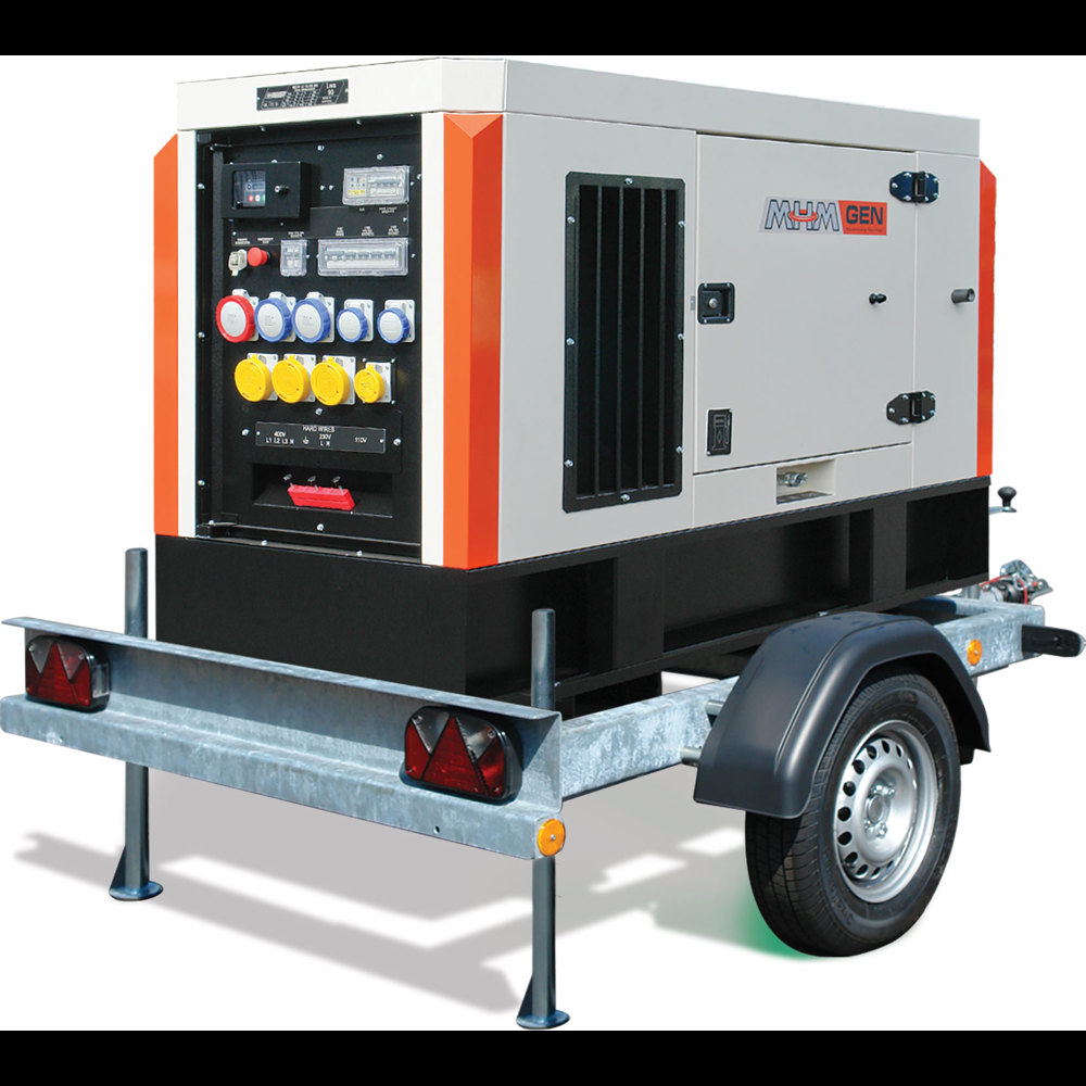 20kVA Generators are silenced and offer a great power output whilst remaining relatively portable as normally supplied as a towable unit. These generators are diesel driven and offer the highest choice of outlets for a portable unit.