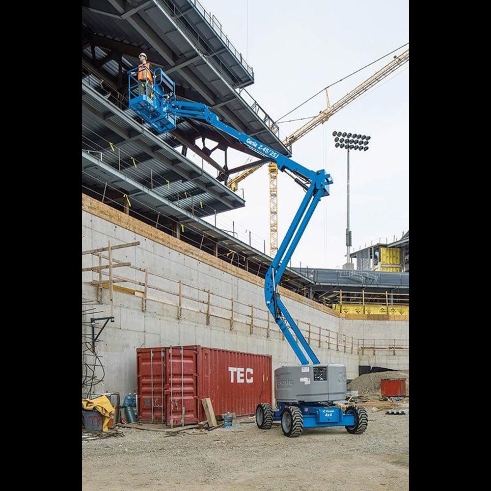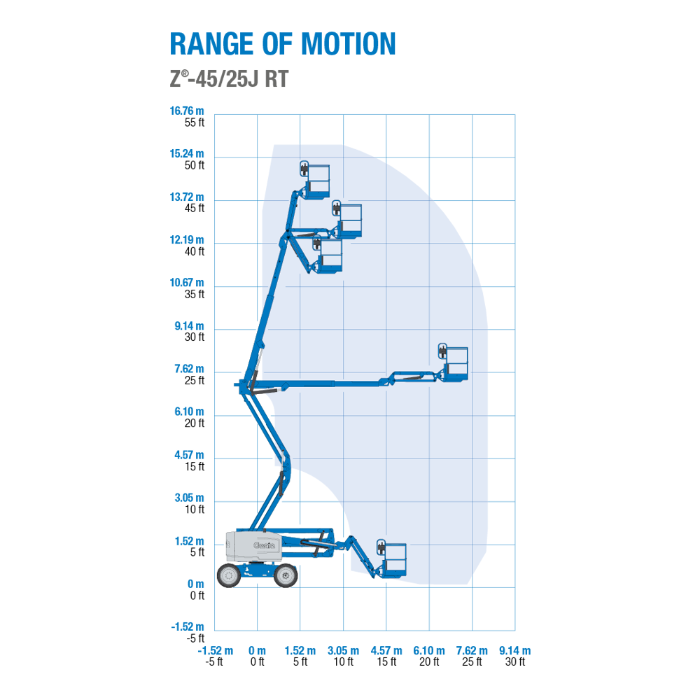 - Hydraulic rotation lets operators move the platform where it’s needed, and the self-leveling feature keeps the platform level throughout the entire range of motion