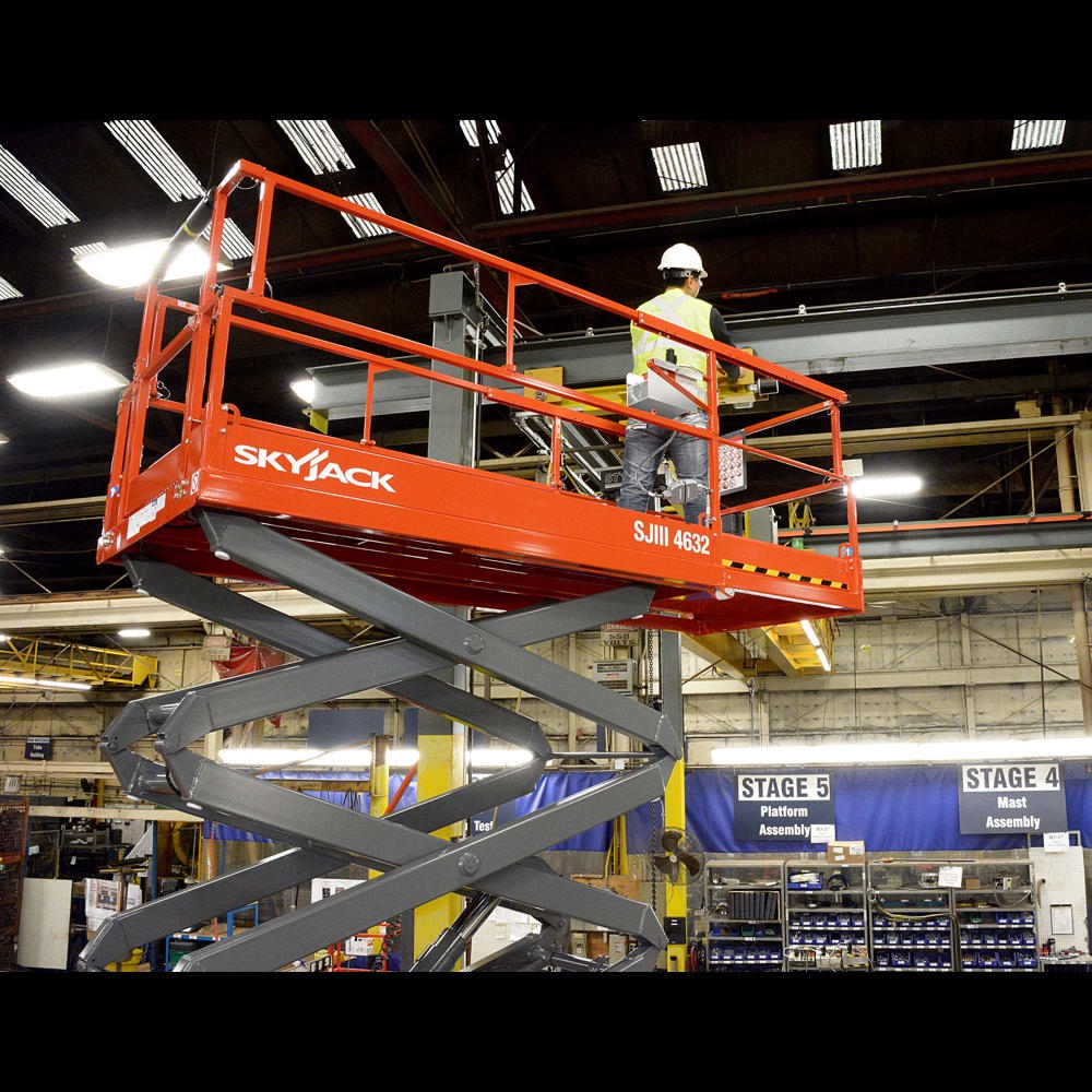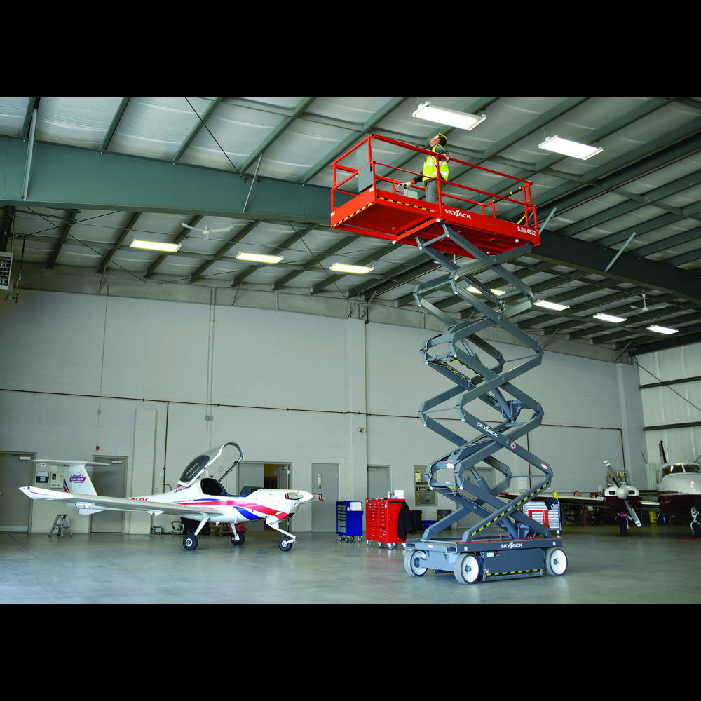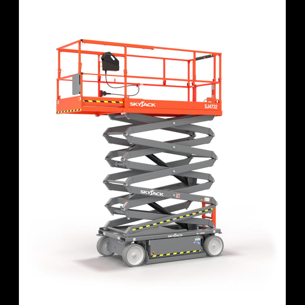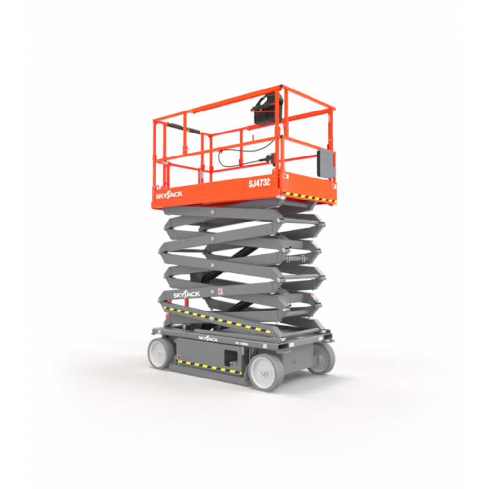 The Skyjack SJ4732 is a narrow width battery electric scissor lift with a platform height of 10m and a working height of 12m. Typical applications include plastering and interior fit-out, mechanical and electrical works, and facilities management.