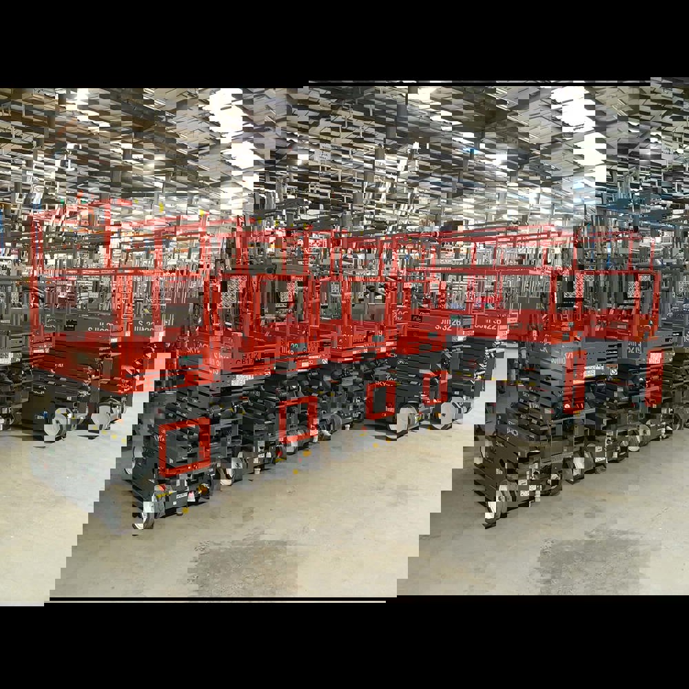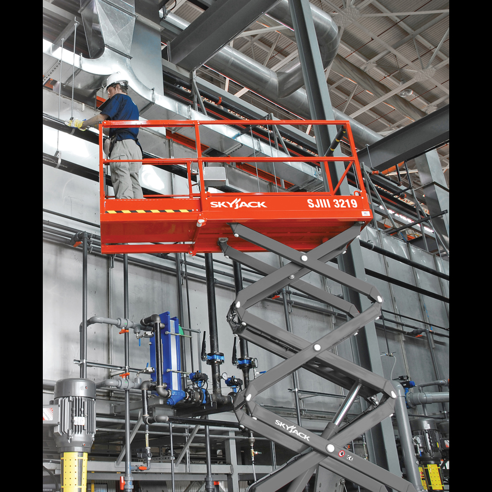 The Skyjack SJ3219 is a narrow width battery electric scissor lift with a platform height of 6m and a working height of 8m. Typical applications include plastering and interior fit-out, mechanical and electrical works, and facilities management.