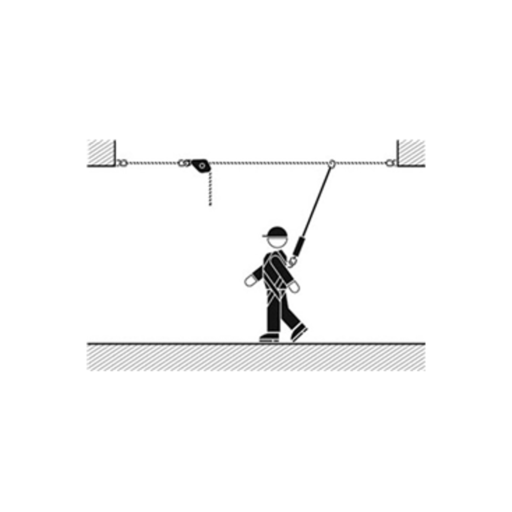 Horizontal Lifelines are used for work restraint and fall arrest. The lifeline is strung between two points e.g. roof man anchors to enable the user to traverse along a planned course, for example when working on the roof of a building.