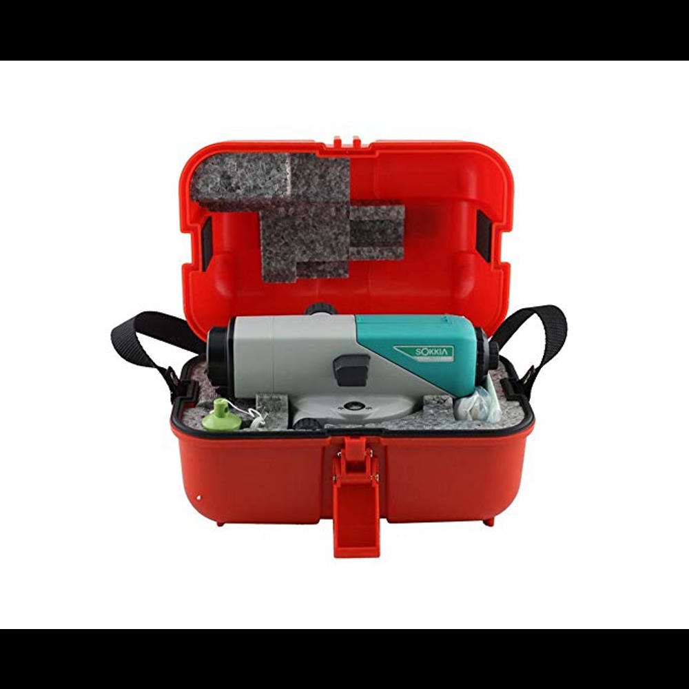 When in use, the surveyor looks through an optical eyepiece at the staff to determine ground levels at various locations around site. The 24x telescope allows the user to take a precise reading from the staff.